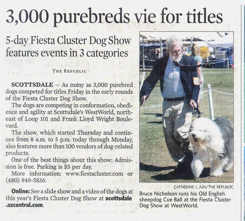 Cue Ball and I in the show ring in Scottsdale, Arizona. Picture and article from the Arizona Repulbic (Phoenix) newspaper |