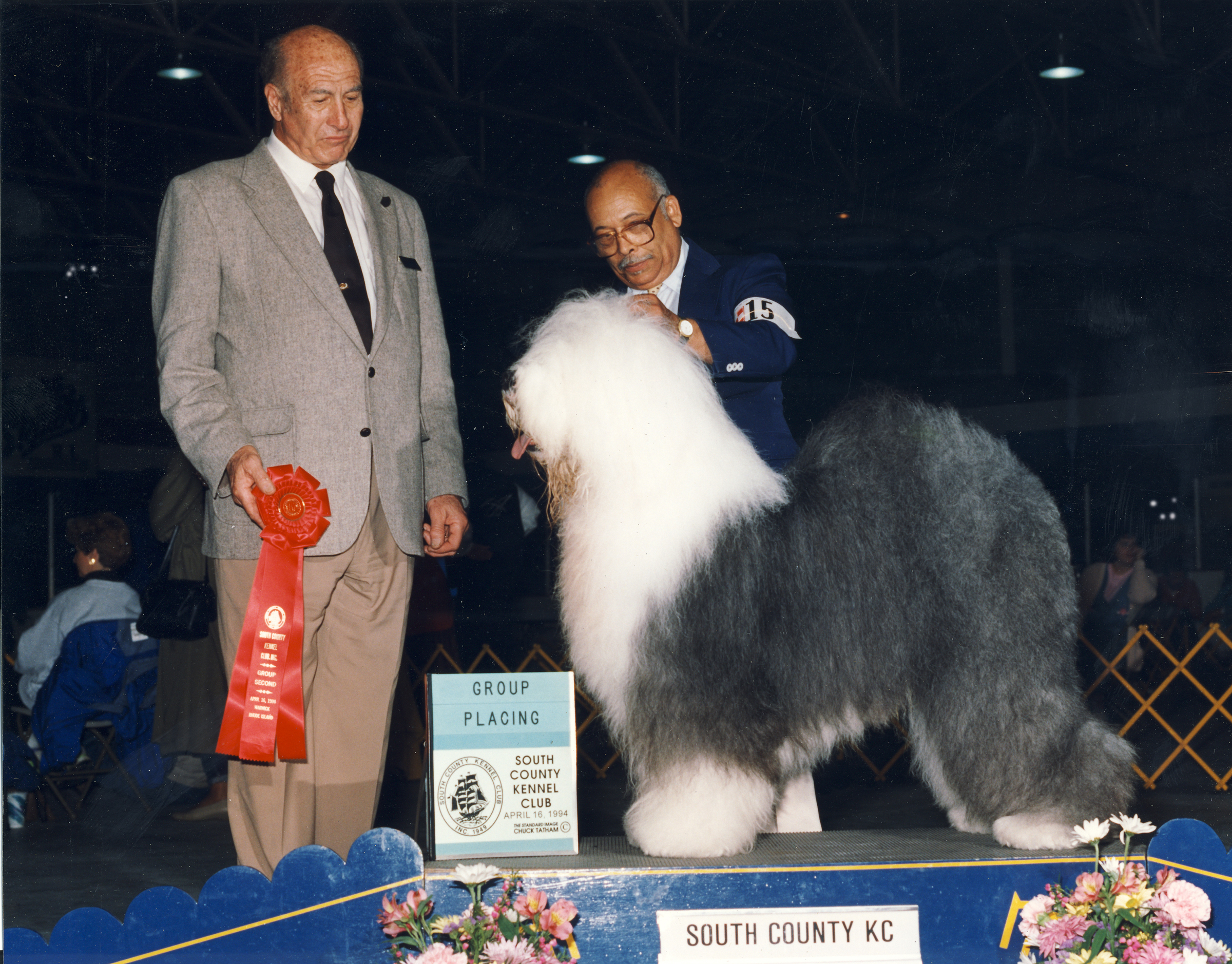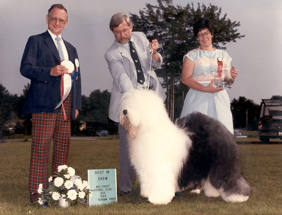 Champion Post Road Professor Higgins In 1994, Higgins was ranked in the Top 10 Old English Sheepdogs in the USA. Shown here winning Third Place in The Herding Group in Massachusetts |