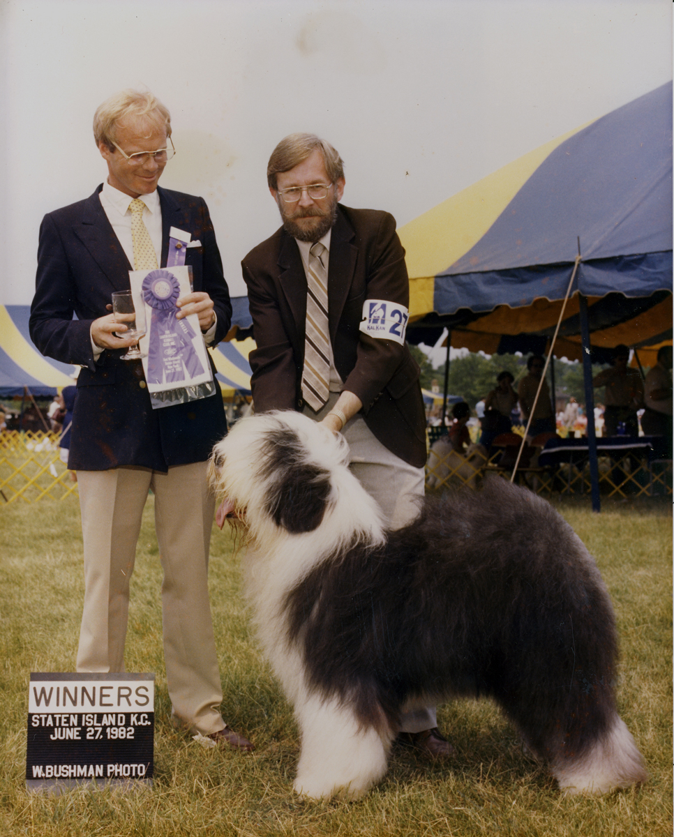 Am Can Champion Post Road Winsome Winston One of our early champions Winston is shown here winning Best of Winners for a 4 point major win over 25 other Old English Sheepdogs at the Staten Island, NY, Kennel Club Show in 1982 |